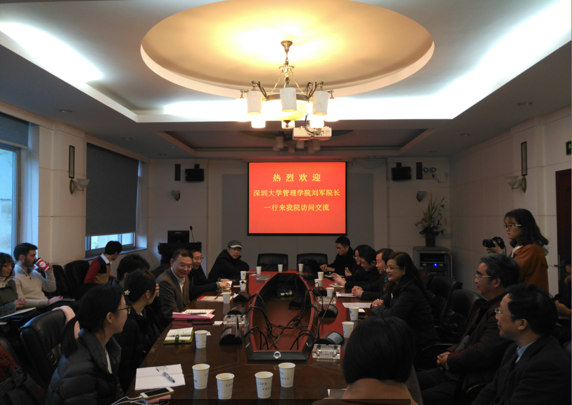 11月30日上午9点,深圳大学管理学院院长刘军教授一行7人来买球官网交流座谈。学院党委书记游达明教授、院长龚艳萍教授、企管系颜爱民教授及部分教师代表参加了交流座谈。