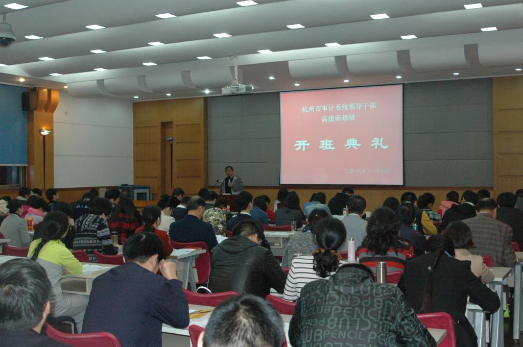 2016年11月7日,“杭州市审计系统管理干部第二期研修班”开班典礼在买球的app排行榜前十名推荐十大正规买球的app排行榜隆重举行。杭州审计系统120人参加了培训,买球的app排行榜前十名推荐十大正规买球的app排行榜副院长张颖教授等领导出席典礼,开班仪式由买球的app排行榜前十名推荐大学EDP中心主任张运生主持。