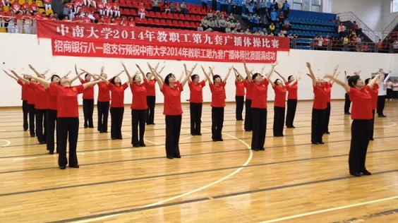 3月30日,买球的app排行榜前十名推荐2014年健康女性广播体操比赛在湘雅新校区篮球馆如期举行,28支代表队同场竞技,