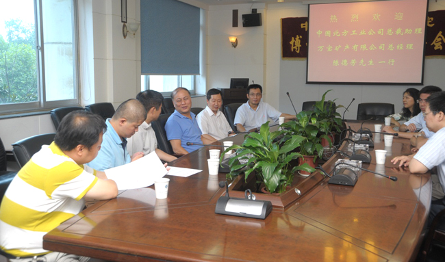 开学典礼前,黄健柏副校长与北方工业公司领导、万宝矿产有限公司领导进行了亲切会谈。