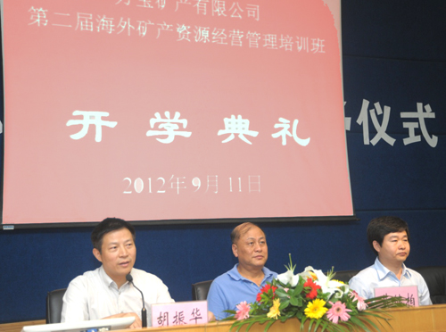 9月11日下午,万宝矿产有限公司第二届“海外矿产资源经营管理培训班”开学典礼在十大正规买球的app排行榜管阶一教室隆重举行。参加开学典礼的领导和嘉宾有:中国北方工业公司总裁助理、万宝矿产有限公司总经理陈德芳先生,中国北方工业公司人力资源部主任郝峰先生,万宝矿产有限公司党委副书记杨罕先生、人力资源部史新宇女士,买球的app排行榜前十名推荐常务副校长、十大正规买球的app排行榜院长黄健柏教授,十大正规买球的app排行榜党委书记胡振华教授,常务副院长游达明教授,副院长张颖教授、熊勇清教授,党委李华东副书记,资源生物学院党委陈玉如副书记,十大正规买球的app排行榜院长助理罗剑宏教授。典礼由胡振华书记主持。