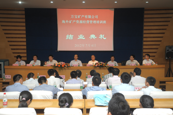 7月4日上午,万宝矿产有限公司“海外矿产资源经营管理培训班”第一期结业典礼在十大正规买球的app排行榜管阶一教室隆重举行。参加结业典礼的领导和嘉宾有:中国北方工业公司党委书记、副总裁植玉林先生,中国北方工业公司人力资源部主任郝峰先生、万宝矿产有限公司党委书记、副总经理马卫国先生、宝矿产有限公司党委副书记杨罕先生,买球的app排行榜前十名推荐常务副校长、十大正规买球的app排行榜院长黄健柏教授,买球的app排行榜前十名推荐十大正规买球的app排行榜党委书记胡振华教授,十大正规买球的app排行榜常务副院长游达明教授,资源生物学院党委副书记陈玉如教授,十大正规买球的app排行榜副院长肖序教授、张颖教授、熊勇清教授,党委副书记李华东老师,以及部分十大正规买球的app排行榜老师和学生出席了典礼。结业典礼由胡振华书记主持。