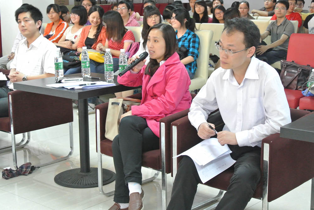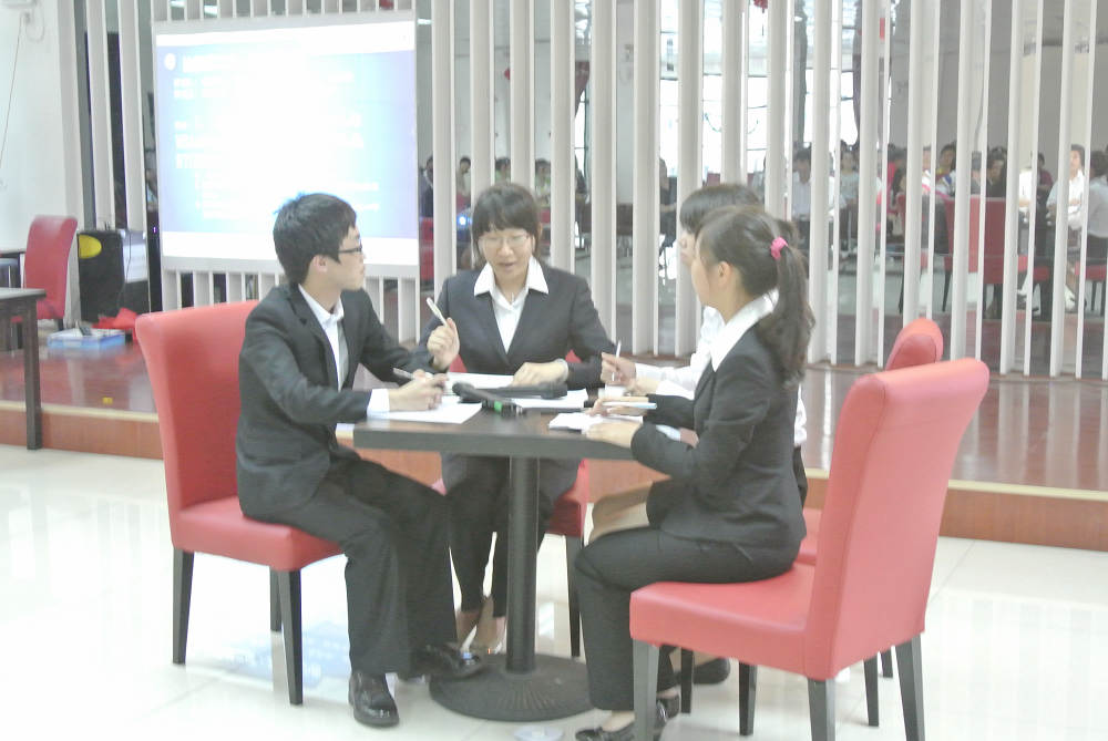 本次决赛分为三个环节,第一个环节为自我介绍,考验选手在一分钟的时间内如何“推销自己”,9名选手各显风格,或沉着冷静,或风趣幽默,展示着自身独特的个人魅力。在无领导小组讨论环节中,选手们用自己的行动诠释了竞争与合作的含义。选手们被分为两组,在规定的时间内阅读题目并且进行讨论,再陈述小组讨论的总结,最后由评委点评和观众对手打分。两组同学风格迥异,第一组同学因观点不一致讨论气氛异常激烈,赛场上顿时弥漫着硝烟的味道;而第二组同学则是在一种轻松和谐的氛围下完成了讨论。选手陈述完毕后,评委从选手们的着装、表情、投入的热情度、以及聆听他人发言等细节方面进行了犀利的点评,指出了许多细节上的失误,这样专业的点评让选手们受益匪浅。在最后一个环节——压力面试中,评委们轮番提问,对选手进行问题轰炸,从而考察选手们的应变能力。双手比划“人”字推测选手思维,现场推销十元矿泉水等小测试让选手们措手不及。灵活的应变,敏捷的思维、精彩的对垒赢得了场下同学们的阵阵喝彩,而评委们的犀利点评也让在场同学受益匪浅。