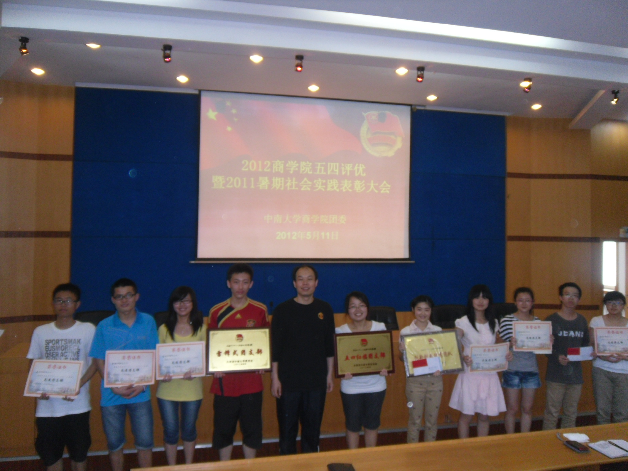 5月11日中午,十大正规买球的app排行榜2011——2012学年五四评优暨2011暑期社会实践表彰大会在十大正规买球的app排行榜管阶二顺利举行。学工办主任李苑老师,学工办黄河沙老师、陈文老师及各优秀团干、团员和部分在暑期社会实践中表现优秀的同学参加了此次会议。