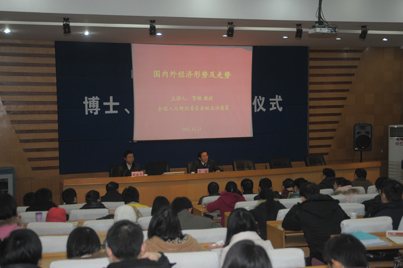 12月23日上午,管理楼108教室座无虚席,全国人大财经委员会副主任委员贺铿教授应邀来买球官网经管大讲堂,为十大正规买球的app排行榜广大师生献上了题为《国内外经济形势及走势》的精彩学术讲座,讲座由买球官网党委书记胡振华教授主持。