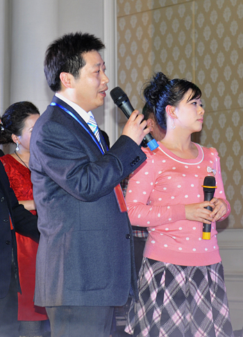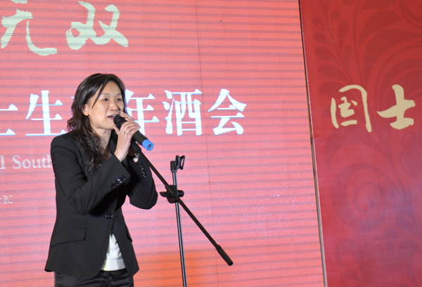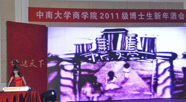 主持人梅冬、陈雯、黄勇主持博士生新年酒会