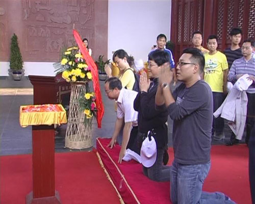 在助学活动前,众人一行整齐的来到了炎帝陵举行了一个简短的拜祭仪式,以此表达对民族始祖炎帝神农氏的无限景仰和衷心赞颂。