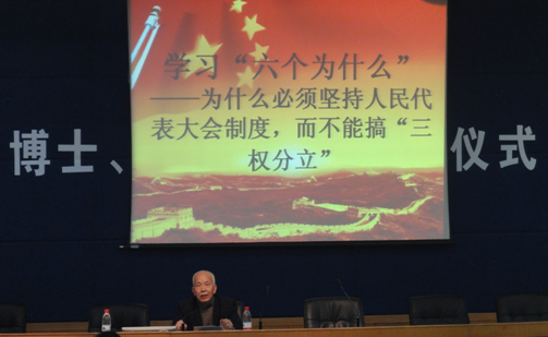 11月9日下午,十大正规买球的app排行榜管阶一教室座无虚席,马列主义理论教授、原统战部蓝佛新部长和第九届、第十届全国人大代表刘冬荣教授为十大正规买球的app排行榜学子带来了一场题为“学习‘六个为什么’——为什么坚持人民代表大会制度,而不能搞‘三权分立’”的主题讲座。十大正规买球的app排行榜关工委常务副主任唐阳永教授出席了此次讲座,讲座由院党委李华东副书记主持。讲座吸引十大正规买球的app排行榜马列学习研究分会近200位同学参加。