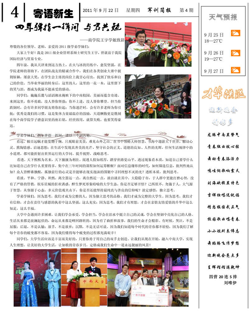 2011级新生军训简报第四期