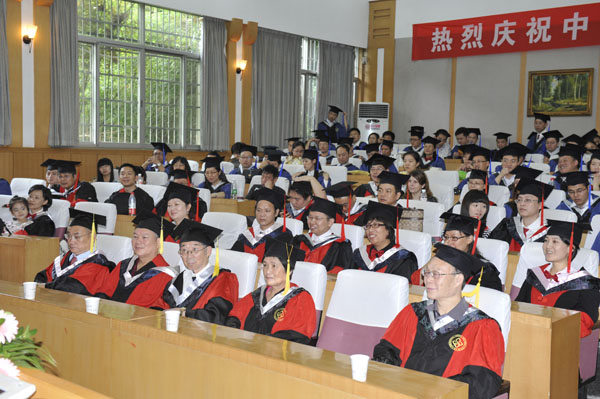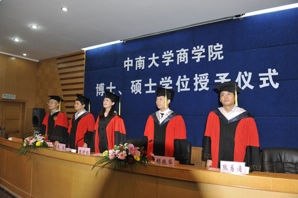 7月9日上午,十大正规买球的app排行榜2011届博士、硕士毕业典礼暨学位授予仪式在管理楼管阶一教室隆重举行。十大正规买球的app排行榜名誉院长、博士生导师陈晓红教授,院党委书记、博士生导师胡振华教授,副院长张颖教授、熊勇清教授,院党委副书记李华东老师,院长助理罗剑宏教授以及部分博士生导师,十大正规买球的app排行榜研工办、MBA中心、研管中心老师及200多位毕业生参加了典礼。仪式由买球的app排行榜前十名推荐十大正规买球的app排行榜党委书记胡振华教授主持。