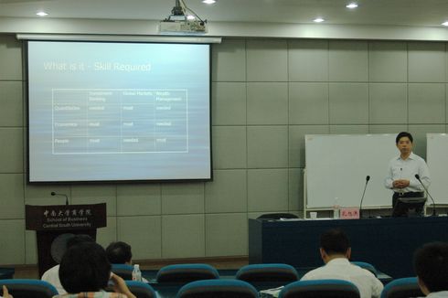 6月9日—12日,前美银美林董事总经理孔旭洪和久银投资基金管理公司董事长李安民为买球官网09级EMBA学员共同讲授了《证券与期货》课程。两位老师都有着丰富的实战经验,为学员们讲授了资本市场的一些热点问题——固定收益市场、财富管理、股权投资理财,并与EMBA学员分享和共同探讨了资本市场带给大家的机遇与挑战。