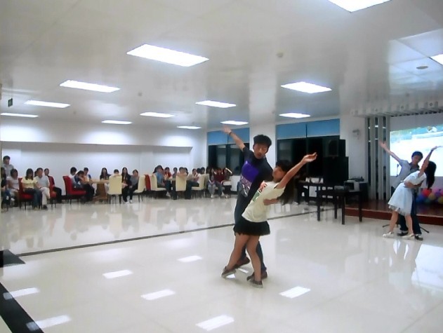 舞会在“解索”“滚雪球”等趣味横生的小游戏中拉开序幕,欢乐愉悦的气氛围绕着在场每个人。随后便是精彩绝伦的交谊舞表演,赢得掌声不断。在现场舞蹈教学环节,教员们流畅的动作和优美的舞姿吸引了在场学子眼球,大家兴致高涨,积极响应,认真配合舞步的学习。在教员的耐心认真地指导下,同学们基本掌握了交谊舞的基础舞步,尽展自己的学习成果,现场充满了青春的味道。柔美清幽的《天空之城》独奏,深情动听的《背对背拥抱》、《过火》等情歌演唱,广州大学代表队的激情演绎的粤语版《海阔天空》,火辣动感的肚皮舞……一系列的精彩纷呈的节目,令人眼花缭乱。伴着激情四射的演出的余韵,舞会在大家的意犹未尽中拉下帷幕。