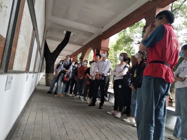 中国共产党长沙历史馆是中国革命精神的发源地,是中国革命历史的见证地。本次活动旨在提升同学们对革命文化的认同感、对革命历史的知情度。在讲解员的带领和介绍下,李苑老师与诸位同学先后参观了毛泽东诗词对联书法艺术碑廊、毛泽东雕像广场、中共湘区委员会旧址暨毛泽东杨开慧故居和“长岛人歌动地诗”中国共产党长沙历史陈列馆。在一系列的参观学习中,同学们感受着岁月的痕迹、传递着细腻的情感、洞察着厚重的党史底蕴。在陈列馆前,大家纷纷面向党旗举起右拳,一起庄严宣誓,重温入党誓词。