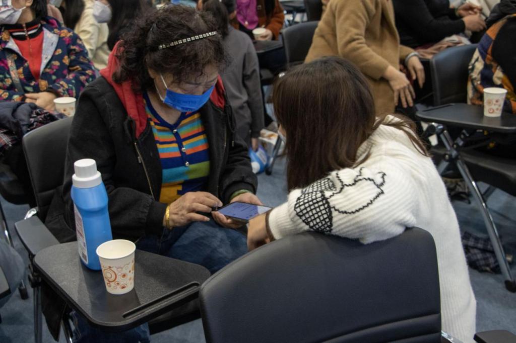 最后是聊天互动环节,老人们根据自身情况向志愿者提问求助,志愿者认真解答他们的疑惑,为他们提供帮助。