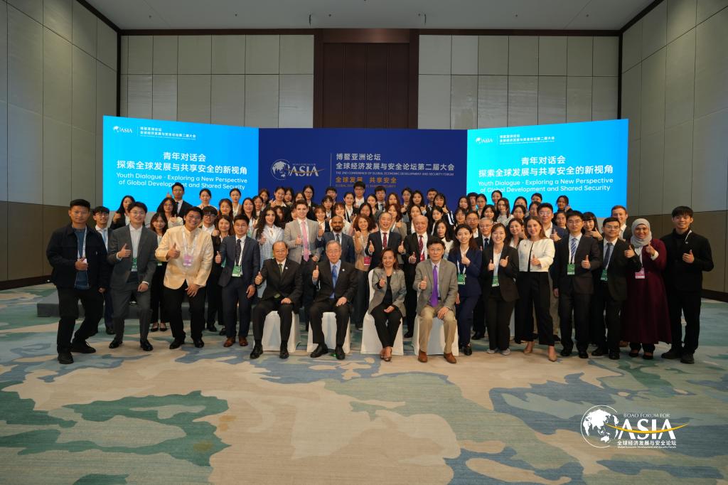 10月29日下午2:30,以买球官网袁康、毛一鸣等40名博硕士研究生为代表的青年代表团,在卢思远老师带领下,参加以“探索全球发展与共享安全的新视角”为主题的青年对话会。对话会由博鳌亚洲论坛全球经济发展与安全论坛大会主席曾伟雄主持,博鳌亚洲论坛理事长、联合国前秘书长潘基文,博鳌亚洲论坛理事、菲律宾前总统阿罗约和清华大学苏世民书院常务副院长潘庆中教授分别进行了致辞。