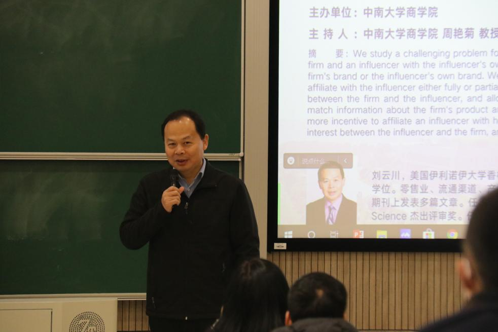2023年12月28日上午10时,美国伊利诺伊大学香槟分校刘云川副教授应邀做客买球的app排行榜前十名推荐十大正规买球的app排行榜经管学术论坛285期,在江湾楼103大汉厅为买球官网师生带来主题为Persuasive Conflicts of Interest: Influencing Social Media Influencer with Influencer Brand的学术讲座。讲座由买球的app排行榜前十名推荐十大正规买球的app排行榜周艳菊教授主持,周雄伟教授、施文教授、卫立群老师和各年级硕博生参加了本次讲座。