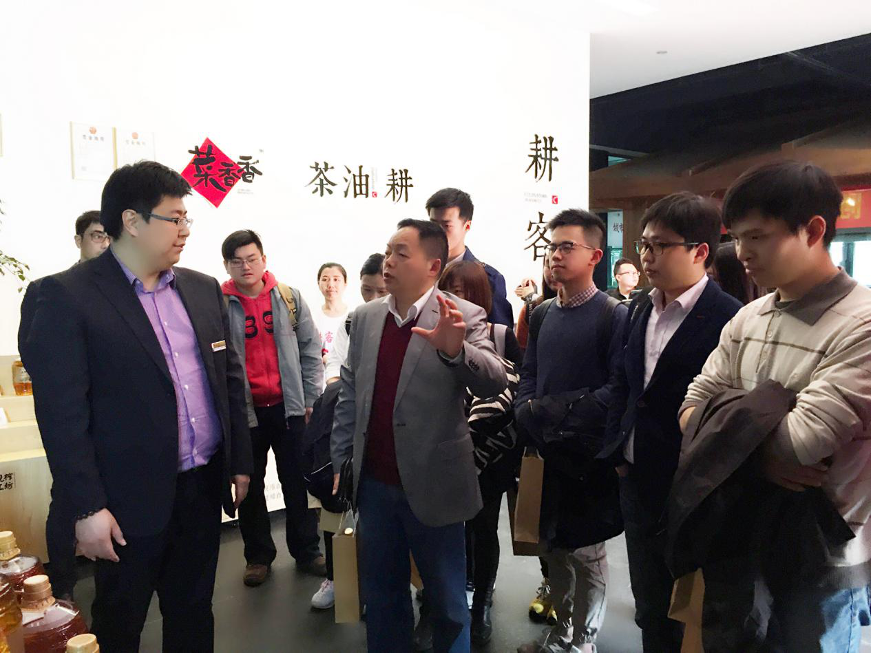 下午14:00点左右,MBA师生一起抵达位于长沙雨花区古曲南路的客茶油工坊基地,首先,负责接待我们的解说员给大家介绍了耕客的公司发展概况,创新模式、榨油工艺、特色产品等。接着带领大家一起参观了茶油工坊的现场制作体验店,样品展示区,并对同学的提问一一给予了详尽的解答。