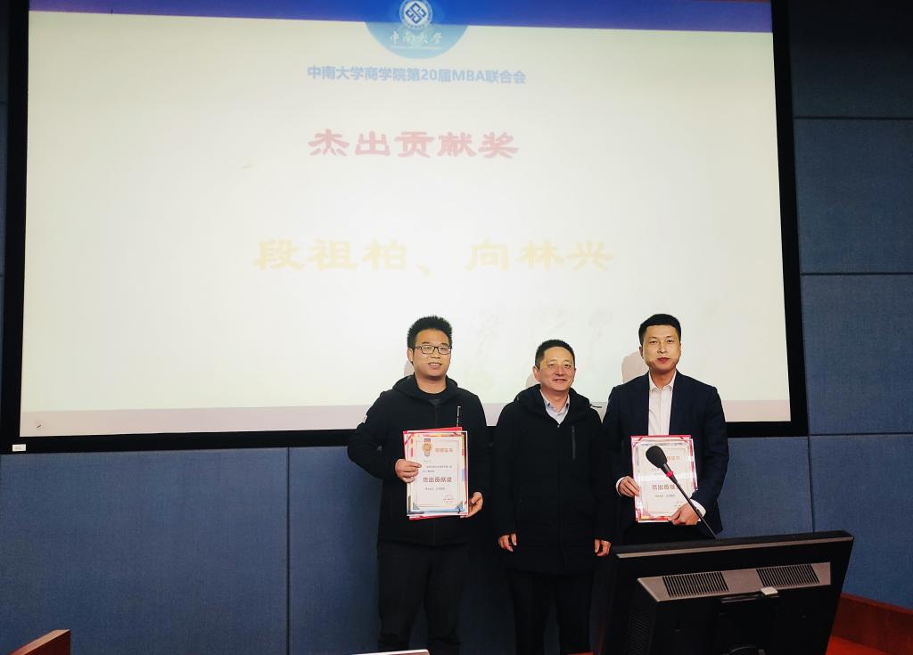 紧接着易主任表彰了第20届MBA联合会优秀干部并颁发优秀干部荣誉证书,毕院长表彰了第20届MBA联合会杰出贡献成员并颁发杰出贡献奖荣誉证书。