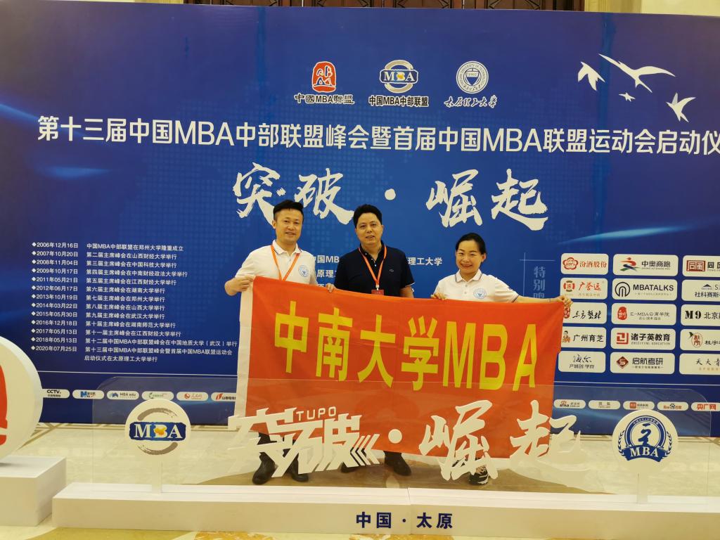 2020年7月25日,第十三届中国MBA中部联盟峰会在太原举行,中部六省46所高校的MBA师生代表、知名企业家近300余人参加了本次会议。买球的app排行榜前十名推荐十大正规买球的app排行榜专业学位教育中心主任易经章、MBA中心张龙伟老师和第20届MBA联合会副秘书长屠丽萍参加了本次会议。
